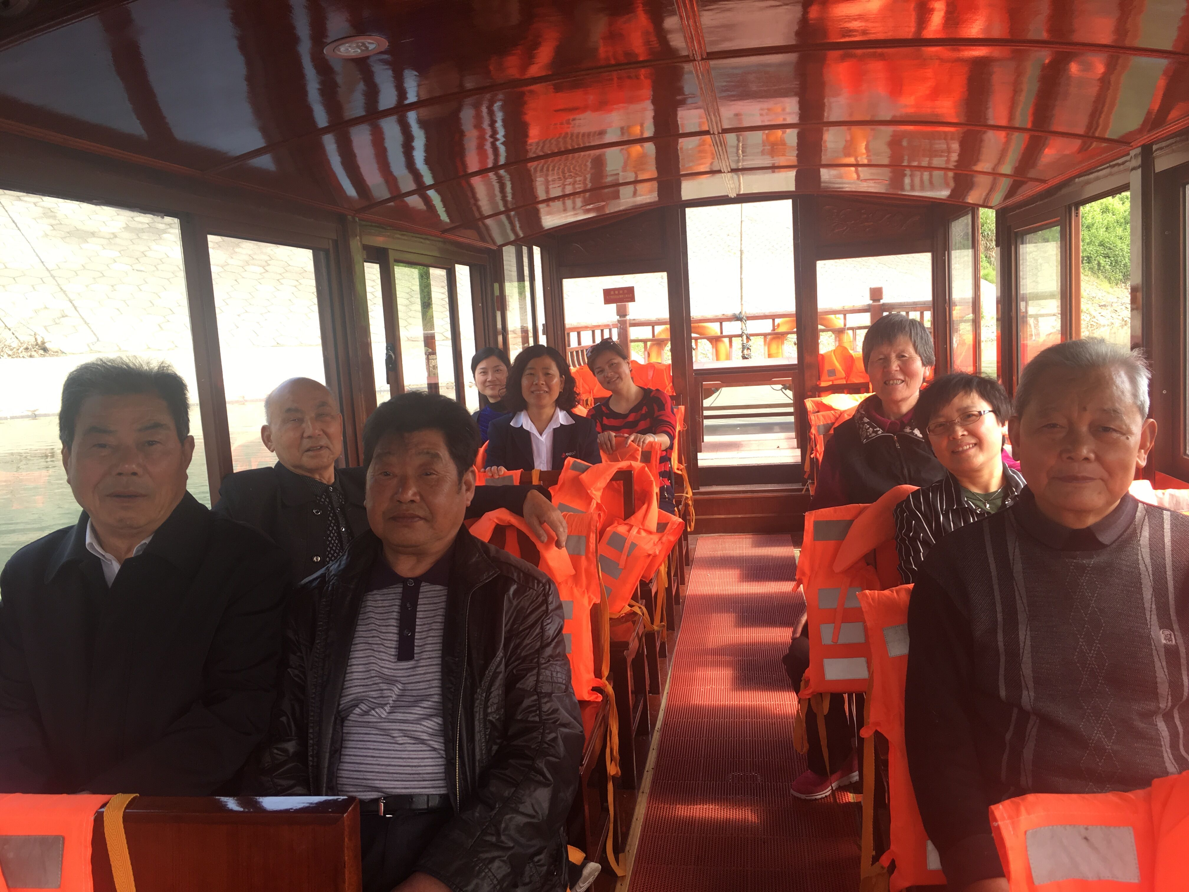 圖為公司勞模正乘船游覽仙女湖