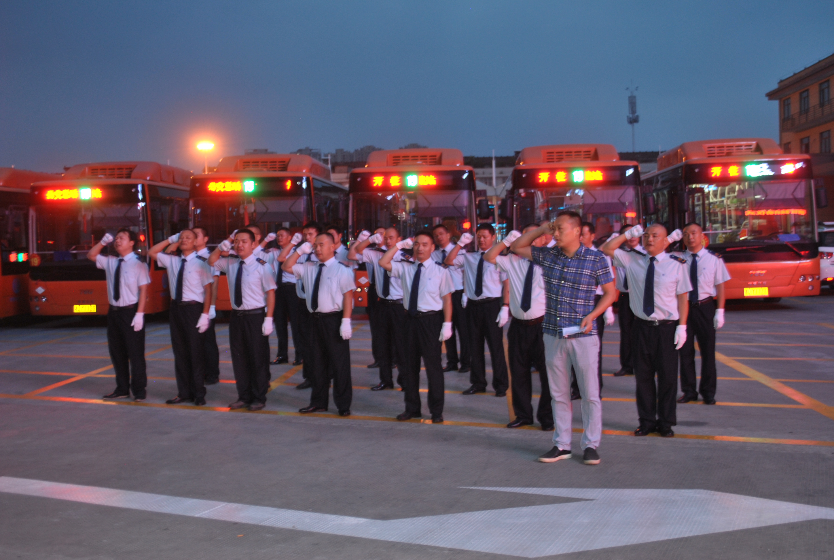 圖為19路線全體駕駛員列隊(duì)待發(fā)