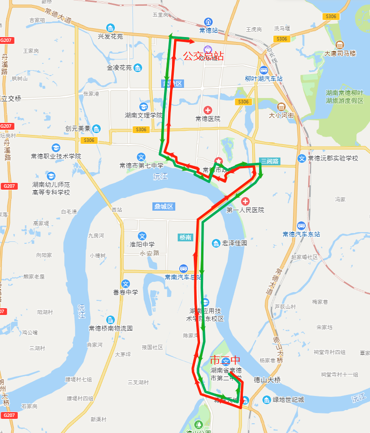 調(diào)整后首末站:常德職院——常德站北廣場(chǎng)